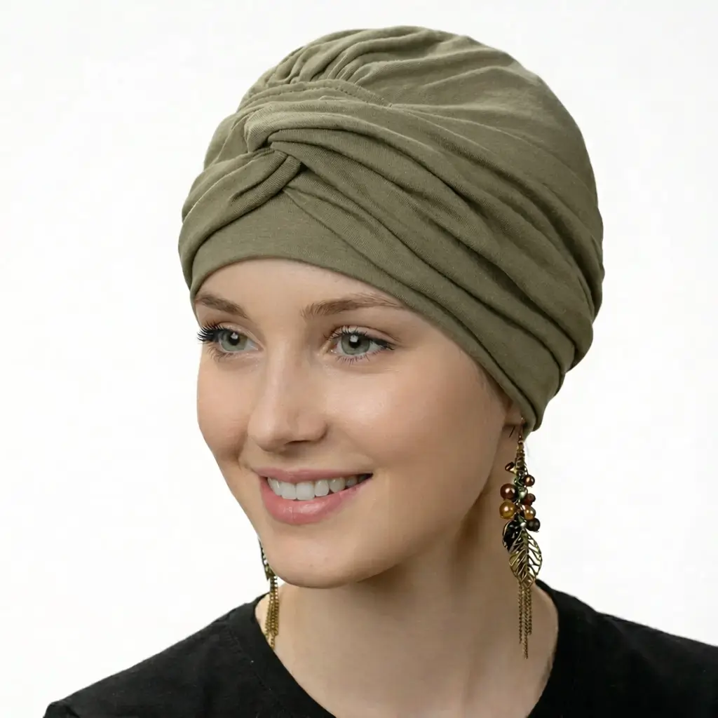 Ce bonnet chimio se distingue par son effet plissé et son nœud croisé, qui apportent une touche d'originalité et de volume. Sa doublure soignée et ses coutures dissimulées sous la doublure garantissent un confort maximal, en évitant toute irritation du cuir chevelu sensible. Les coutures de finition cachées sous la doublure, n'irritent pas la peau